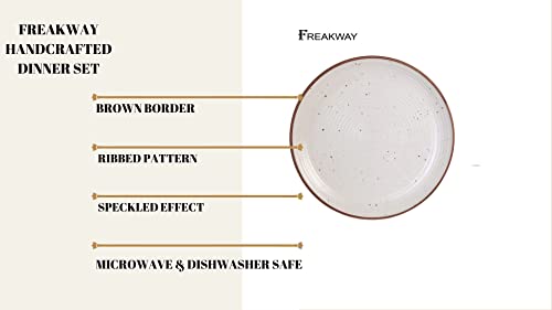 Freakway Handmade and Handcrafted Ceramic Stoneware Cream White Dinner Plates 10 Inches with Serving Bowl(4 Pieces, 2 Dinner Plate with 2 Bowl, Dishwasher & Microwave Safe)