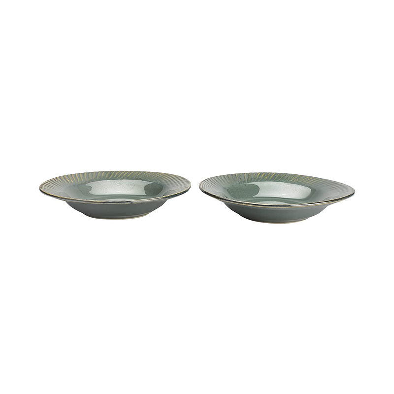 The Decor Lane Ceramic Hand-Painted Pasta Plate| Soup Plate | Snack Plate | Size 7 inch |Microwave Safe, Oven Safe |Set of 2 Plates (Green)