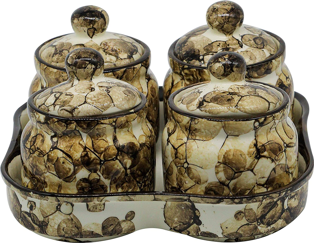 RAJ ROYAL Ceramic Food Storage Container with Lid & Tray Set of 4 Storage Canister (Brown, 200 GR)