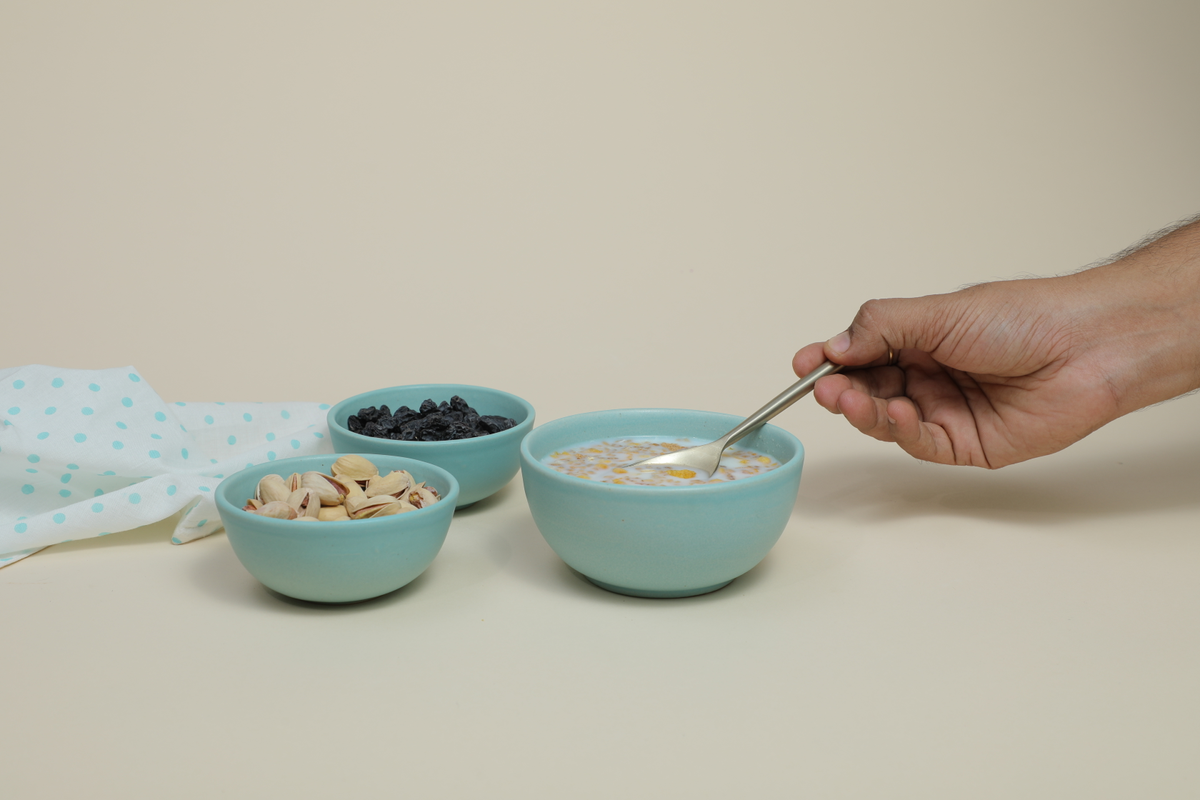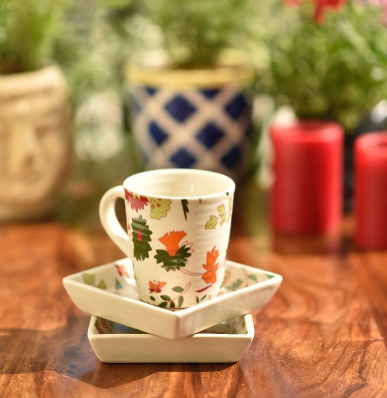 The Decor Lane Hand Painted Mughal Design Handled Ceramic Bowl Set for Snacks Ceramic Serving Bowl Set for Dinner (300 ml, Set of 6) | Maggi Bowls | Cereal Bowls