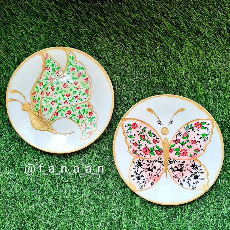 Set Of 2 Handpainted Ceramic Wall Plates 7.5 Inches